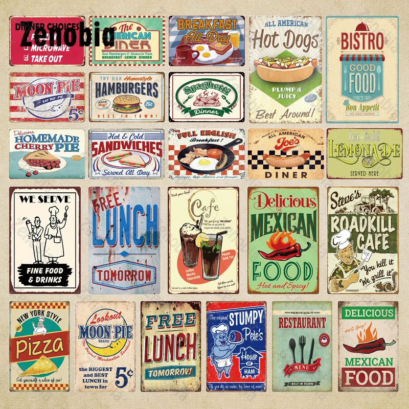Metal Sign Food Hamburger Hot Dogs Moon Pie Pizza Delicious Mexican Food Metal Poster Vintage Plaque Fast Food Tin Plate Artwork Plaques Signs Aliexpress